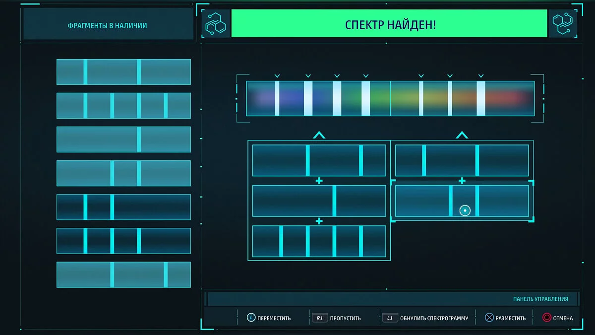 Теперь анализируем вещество. Для этого переносим фрагменты справа так, чтобы они совпадали с нужными, расположенными в центре экрана. На этом задание заканчивается, но в дальнейшем появятся новые головоломки. Уходим из здания и получаем в награду опыт.
