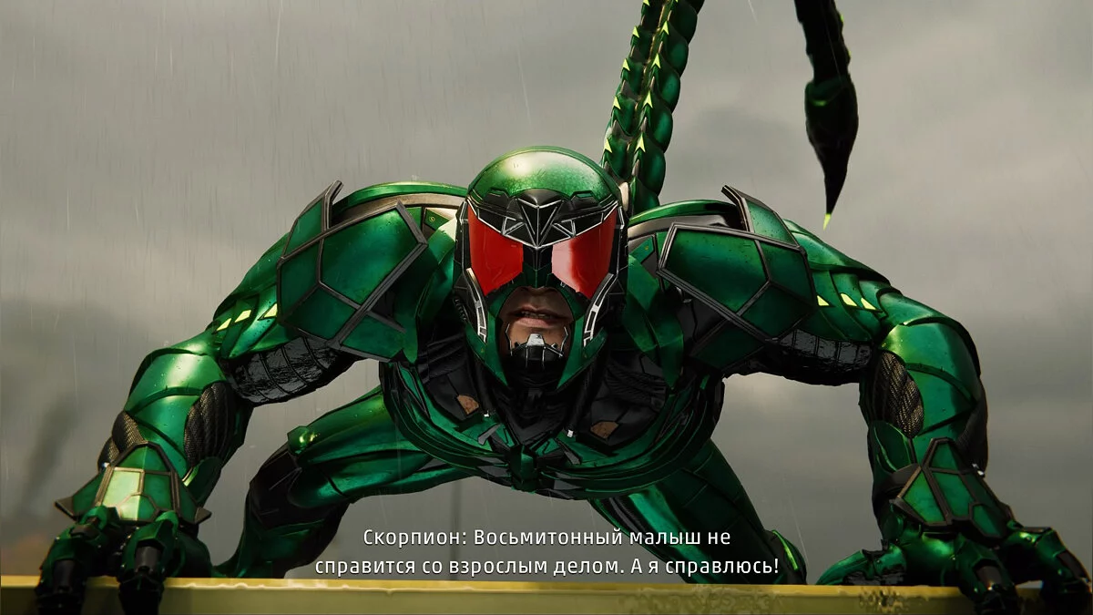 Следующая цель Человека-Паука — Скорпион. Отправляемся в центральный парк и попадаем в засаду. Скорпион отправит Питера ядом из своего хвоста. Забираемся на крышу здания и изучаем вещество.