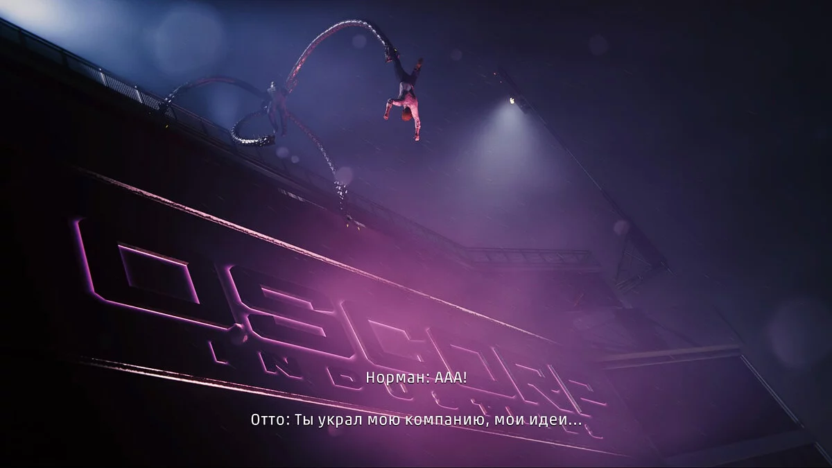 Отто и Норман находятся на крыше здания Озкорп. Норман не собирается выполнять требования Отто, за что будет сброшен с крыши, но Питер успеет его спасти.