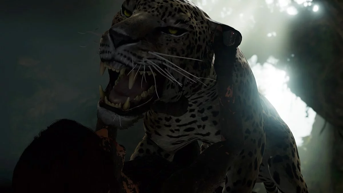 Идем по следам крови и спрыгиваем вниз. Тут живут ягуары. Проходим узкий коридор и попадаем на арену, где нам и предстоит биться с одним из них. Стараемся стрелять в голову и уворачиваться от его атак.