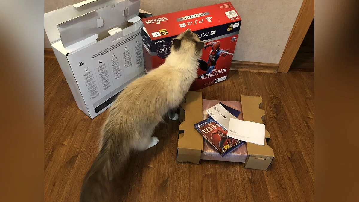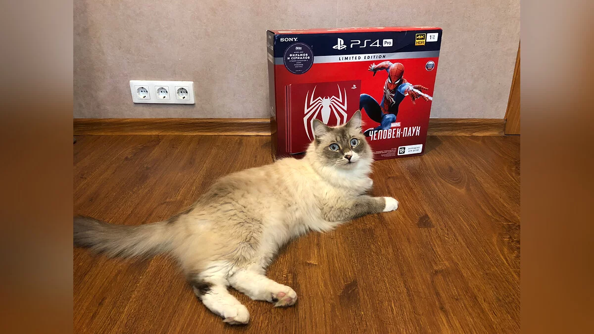 Кот Макс распаковал особое издание PS4 Pro с игрой «Человек-паук»