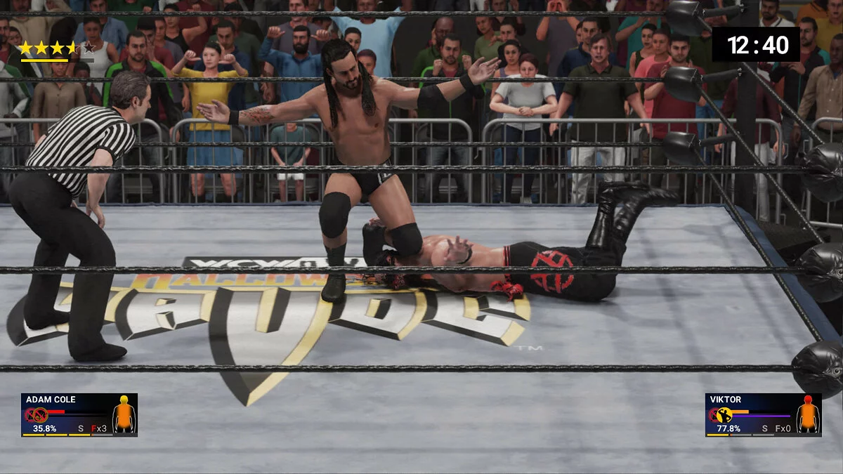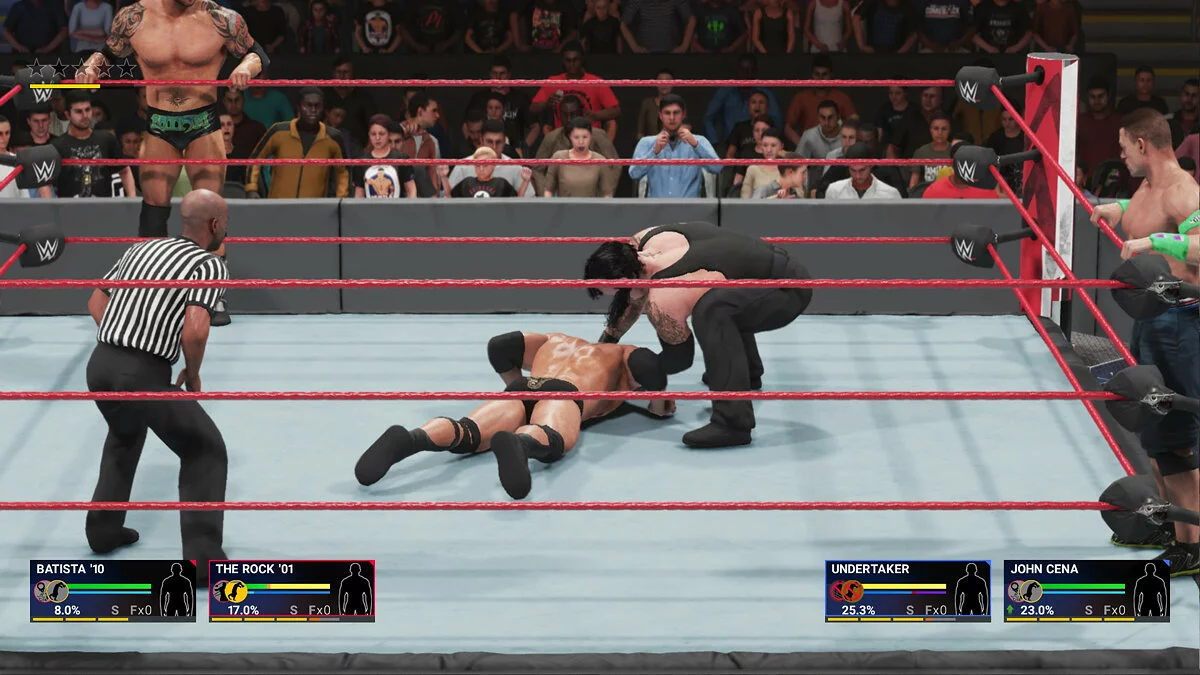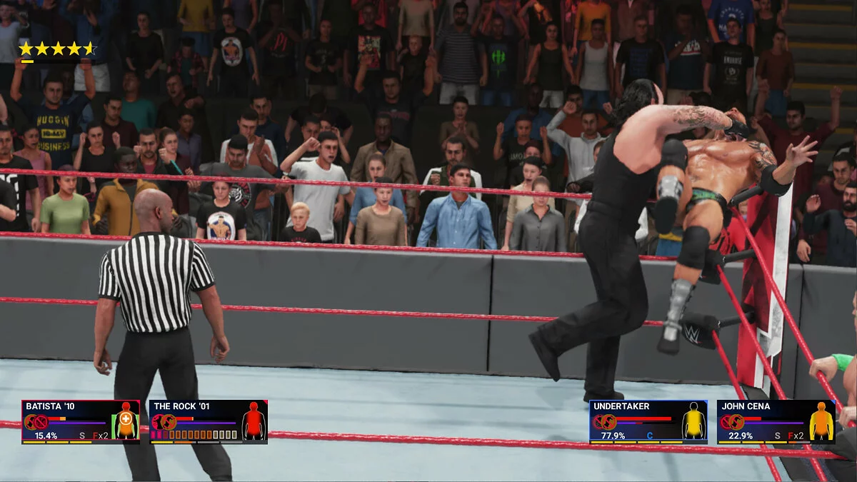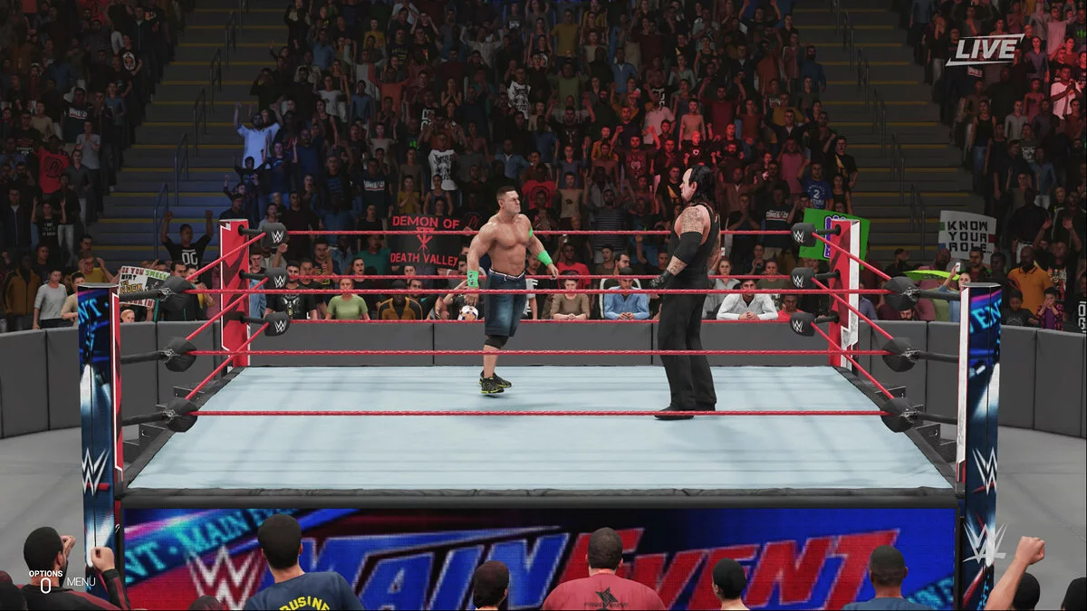 Подобная механика в WWE 2K живет уже давно, но в новой части она заметно улучшилась. Если раньше кнопки приходилось нажимать до или после появления иконки на экране, то теперь все работает более-менее хорошо. Кнопку требуется нажать тогда, когда загорается соответствующий значок. Единственное, что сильно удручает в управлении, так это интерфейс. Иконки какие-то маленькие, а меню крайне неудобное. Такое ощущение, что разработчики вообще не заморачиваются по этому поводу и делают интерфейс только для «своих». Жаль, ведь новичков такой недочет может сразу же отпугнуть.