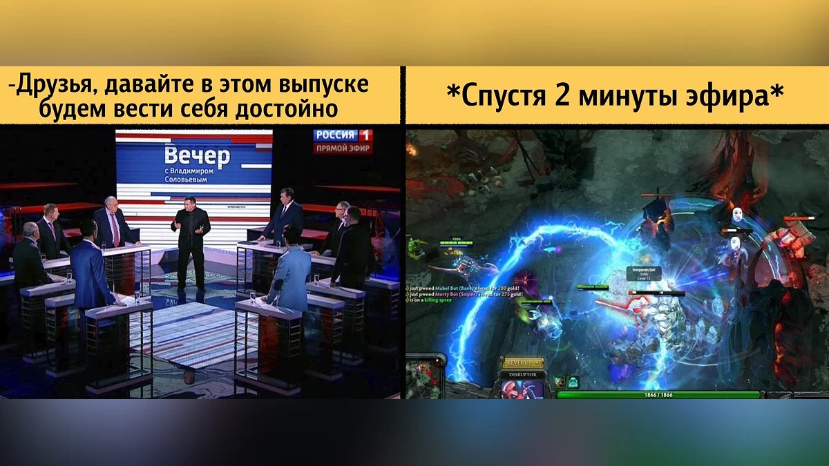 После того, как российский эксперт Филипп Гросс-Днепров в передаче Владимира Соловьева на радио «Вести FM» обвинил игру «ДОКА 2» в массовом убийстве в Керченском политехническом колледже, интернет буквально сошел с ума. Появилась уйма смешных мемов от геймеров, которые высмеивают слова эксперта, назвавшего игру DOTA 2 «ДОКОЙ 2» и считающего, что в ней можно вытаскивать людям кишки за 10 минут. Встречайте подборку забавых мемов.