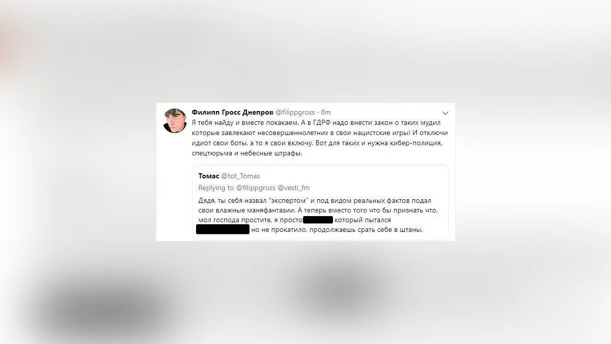 Когда эксперта начали обвинять в необъективности и непрофессионализме, тот стал угрожать пользователям Twitter киберполицией, спецтюрьмой и штрафами. Однако это не остановило геймеров продолжать подшучивать над экспертом с «Вестей FM».
