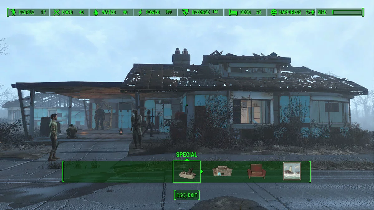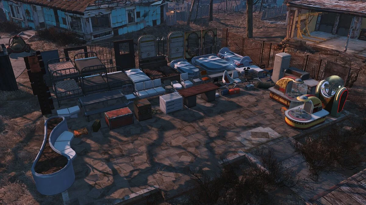 Settlement Supplies Expanded добавляет более 400 новых объектов, включая мебель, двери, виды заборов, декоративные объекты вроде деревьев, довоенных автомобилей и транспорта, элементов ландшафта и так далее. Функциональные предметы также присутствуют: например, кресла хирурга и парикмахера.