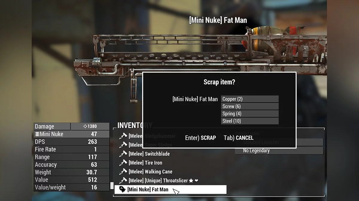 Теперь количество предметов — и сами предметы — пропорциональны размерам и конструкции изначального объекта: теперь с минигана и пистолета падает разное количество хлама. Уникальные варианты оружия автор не изменял — включая тот же Хлам-о-трон, например.