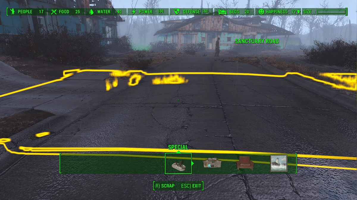 Возможности предыдущего мода сковывает ограничение радиуса строительства — мастерские в Fallout 4 находятся там, где их поставили разработчики, и в оригинальной игре это никак не изменить. В Fallout 76 же, мастерской будет переносное устройство C.A.M.P — поставив его, в пределах его зоны действия можно строить, а ставить его можно там, где захочется.