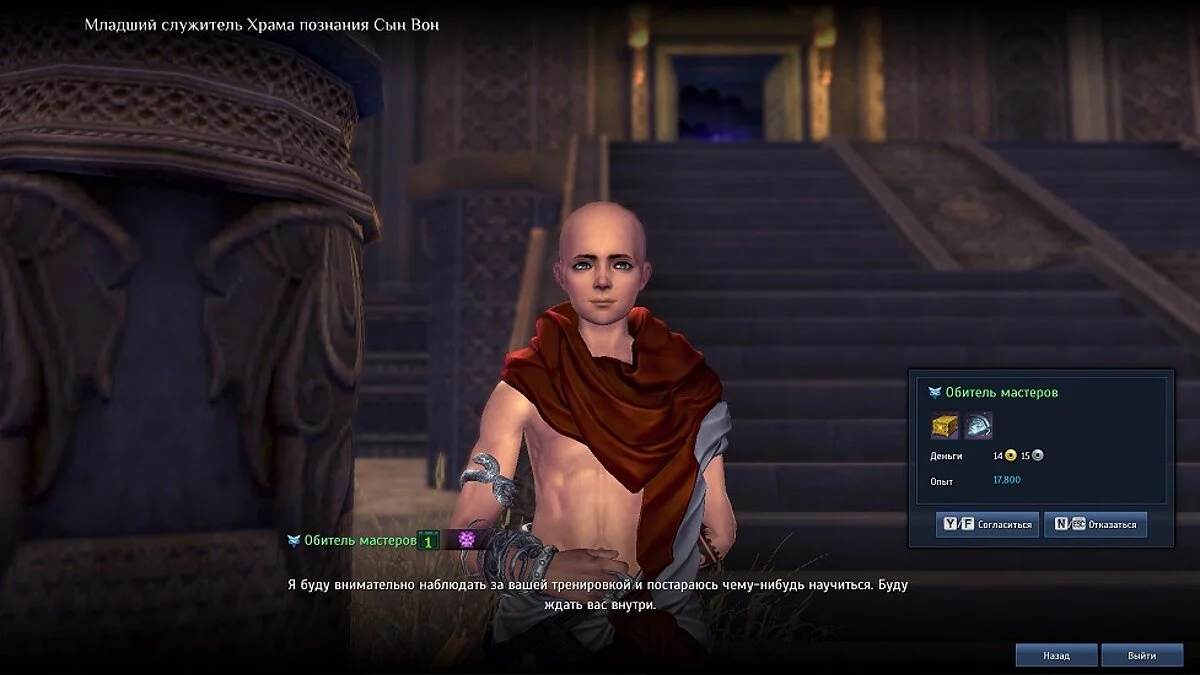 Проходить «Обитель Мастеров» можно только в одиночку. Ежедневные задания можно получать у Сын Вона — младшего служителя Храма познания: