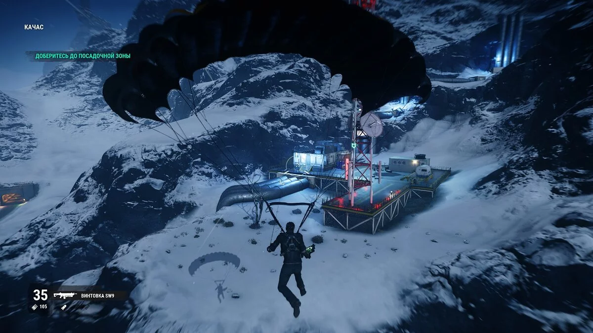 Прежде всего стоит отметить больший масштаб. Игровой мир простирается на добрую тысячу квадратных метров и разделяется на несколько областей, в каждой из которых свой ландшафт, погода и наполнение. За какие-то 10-15 минут Рико может побывать на заснеженных вершинах гор, затем на вингсьюте спуститься в знойную зеленую долину, а потом сесть в машину и отправиться в пустыню.
