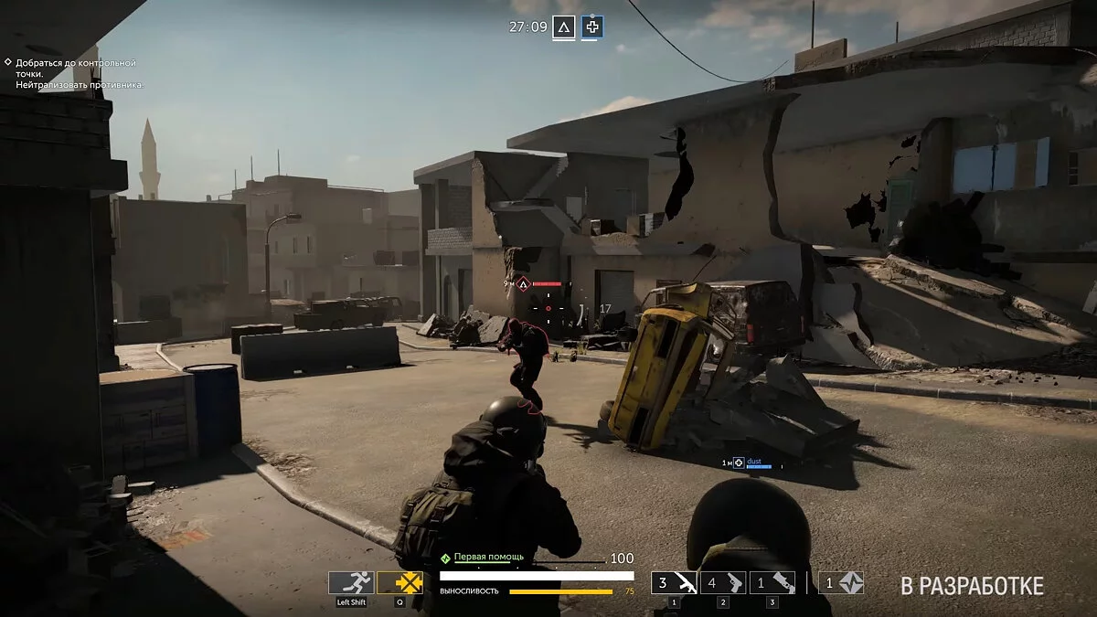Альберт Жильцов: Кстати, мы пять раз меняли расположение расположение относительно игрока. Если повесить камеру за плечом персонажа, то визуальный ряд сразу становится круче, особенно когда оперативник стреляет или использует экипировку.