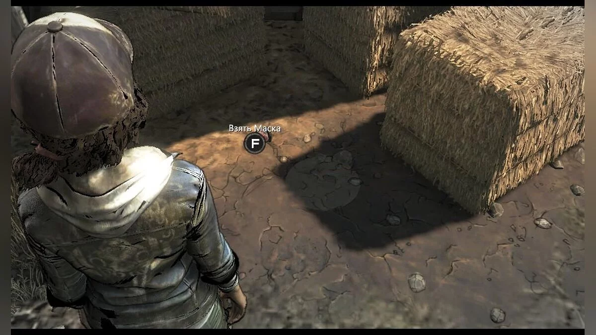 Когда план спасения будет готов, Клем и Эй Джей отправятся искать Джеймса (James). Выслушав просьбу Клементины, он проведет вас к своему сараю. Прежде чем поговорить с Джеймсом, у нас будет время найти два последних коллекционных предмета. Маску можно найти на земле возле стога сена, слева от входа в сарай.