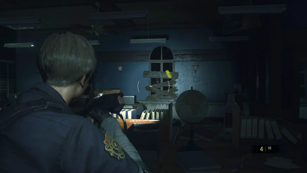 Еще одно интересное нововведение — это баррикады. На первом этаже полицейского участка много разбитых окон, через них лезут зомби. Это может происходить вечно, но патроны на уровне строго ограничены.