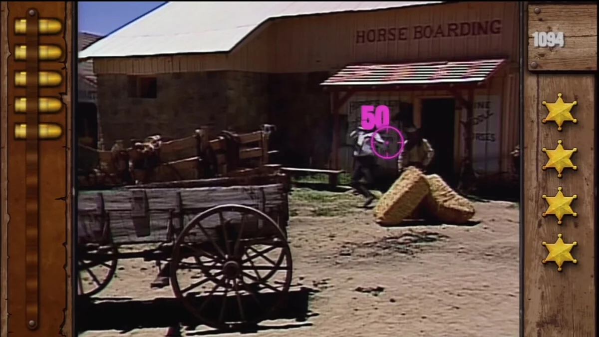 А вот Mad Dog McCree — это уже, если можно так сказать, видеотир. Вообще категорию подобных игр прозвали LaserDisc games, по сути это — интерактивное кино (целиком состоят из полноэкранных видеороликов, между которыми нужно выполнять какие-либо действия). Распространялись они на лазердисках, предках CD и DVD.