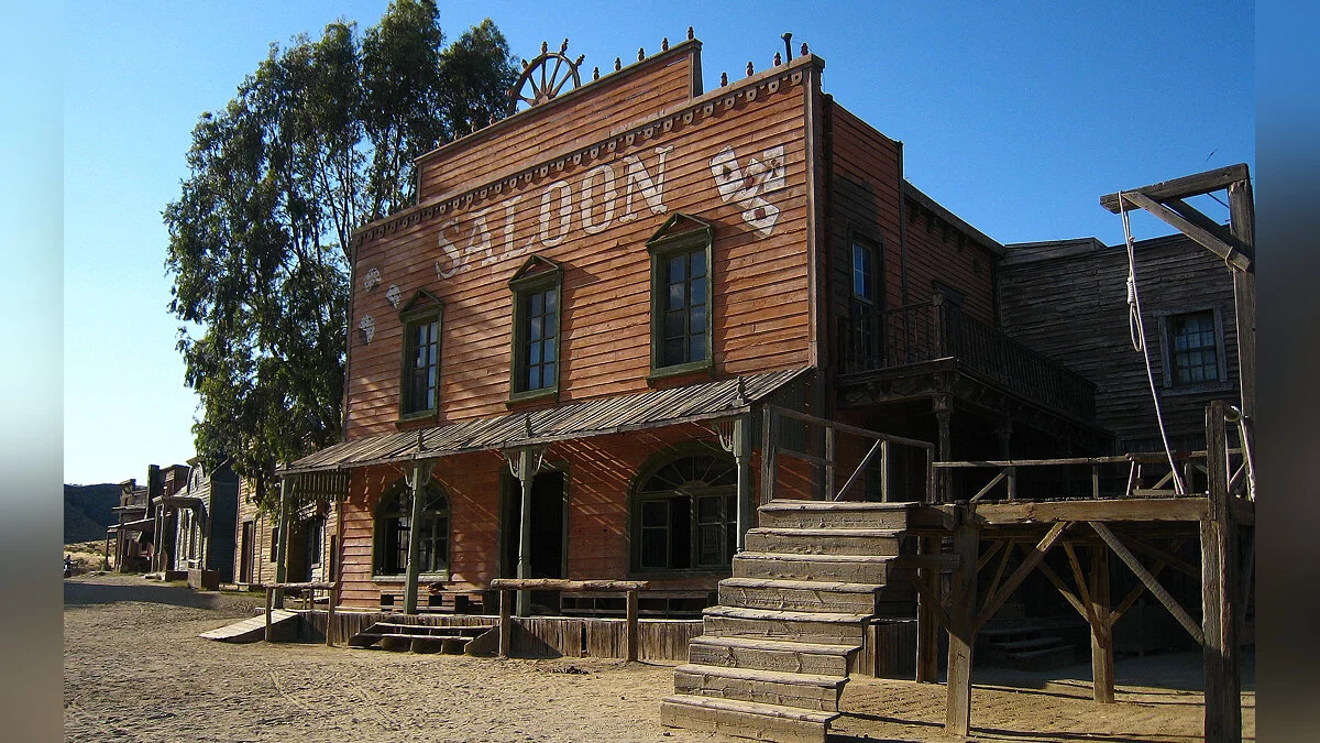 Также вестерн нельзя представить без характерных для городов тех времен построек, таких как салун — бар, который посещали ковбои, бандиты, картежники.