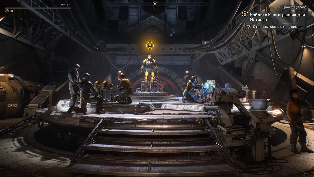 Однако 26 января я и два приглашенных мною игрока все-таки смогли пробиться в игру и посмотреть, что такое Anthem. В игре меня встретил хаб — этакая локация, в которой персонаж общается с NPC, берет у них квесты и может проводить манипуляции со своим экзокостюмом (джавелином). Жаль только, что хаб этот — однопользовательский, а поэтому других игроков в нем встретить нельзя. С ними можно только в кооперативе выполнять задания и бродить по открытому миру.