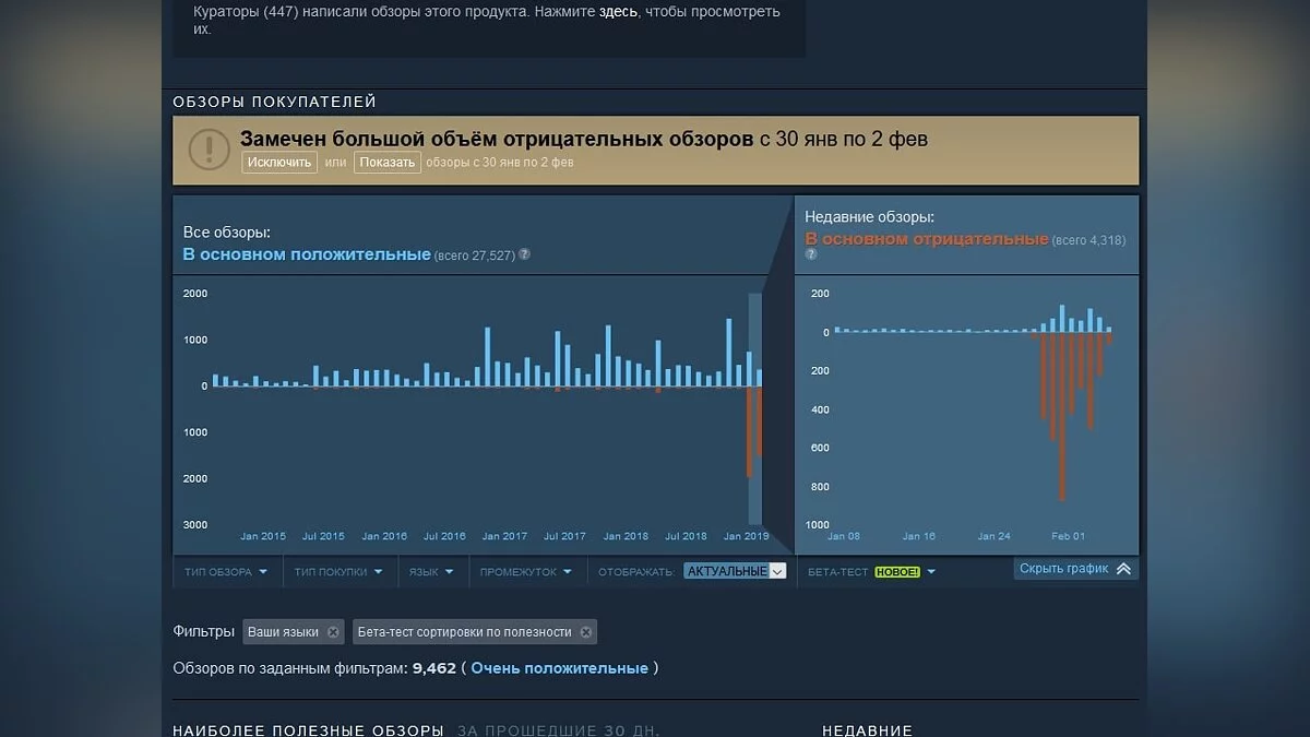 Держатели Steam, компания Valve прокомментировала ситуацию на странице игры в своей платформе следующим образом: