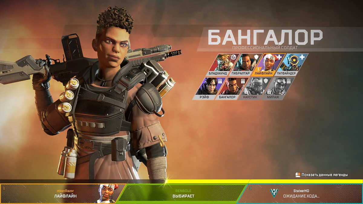 А это невозможно без знания персонажей, или как их еще называют, «Легенд». Каждый персонаж имеет очень четкую профессиональную ориентацию, но, хотя формально в игре три класса — поддержка, штурмовик и солдат, они могут отличаться очень значительно.