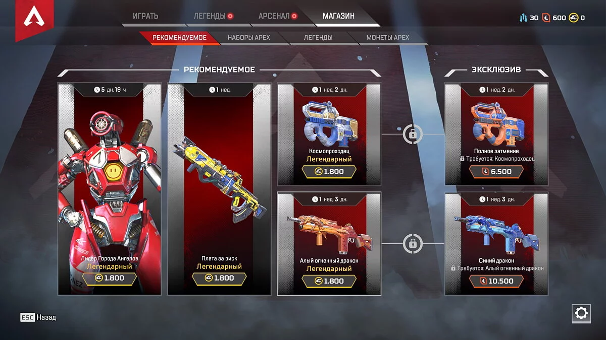 Также Respawn продает элитарные скины, вот они уже очень дороги (за 3000 рублей можно купить всего 2-3), да еще имеют ограниченное время действия — 7-10 дней.