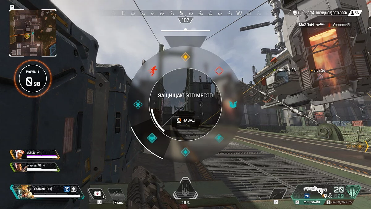 В основе геймплея Apex Legends стоят отряды и общение, достигаемое путем простейших, но очень эффективных команд — можно понять друг друга и без голосового чата. Для этого используется отдельное радиальное меню, динамические меняющееся под стать ситуации: