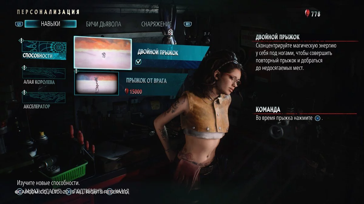 Прокачка навыков происходит при вызове подруги Неро через телефонную будку. Этакие безопасные места, в которых все-таки дают передохнуть об бесконечной борьбы с демонами. В магазине на заработанные по мере прохождения очки можно купить новые протезы, навыки (прыжки, комбо и т.п.) и снаряжение. В общем ничего необычного.