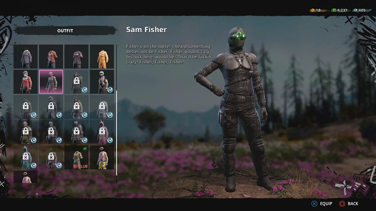 В игре можно отыскать костюм Сэма Фишера (главный герой Splinter Cell) с прибором ночного видения. Как его найти, мы уже рассказали в нашей другой статье. Хотелось бы заметить, что помимо самого костюма, во время экспедиции Government Plane Wreck вы сможете найти самолет C-147B Paladin, который в Splinter Cell использовался в качестве передвижной базы секретной организации «Четвертый эшелон». В этом самолете есть записка от Сэма Фишера, в которой тот рассказывает, что пережил ядерную бомбардировку США и теперь ищет свою потерянную дочь Сару.