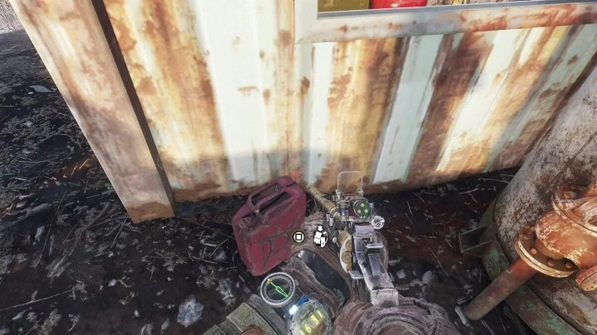 В небольшом здании есть генератор, который использует топливо. Генератор пуст — найдите полную канистру, чтобы залить топливо в машину.