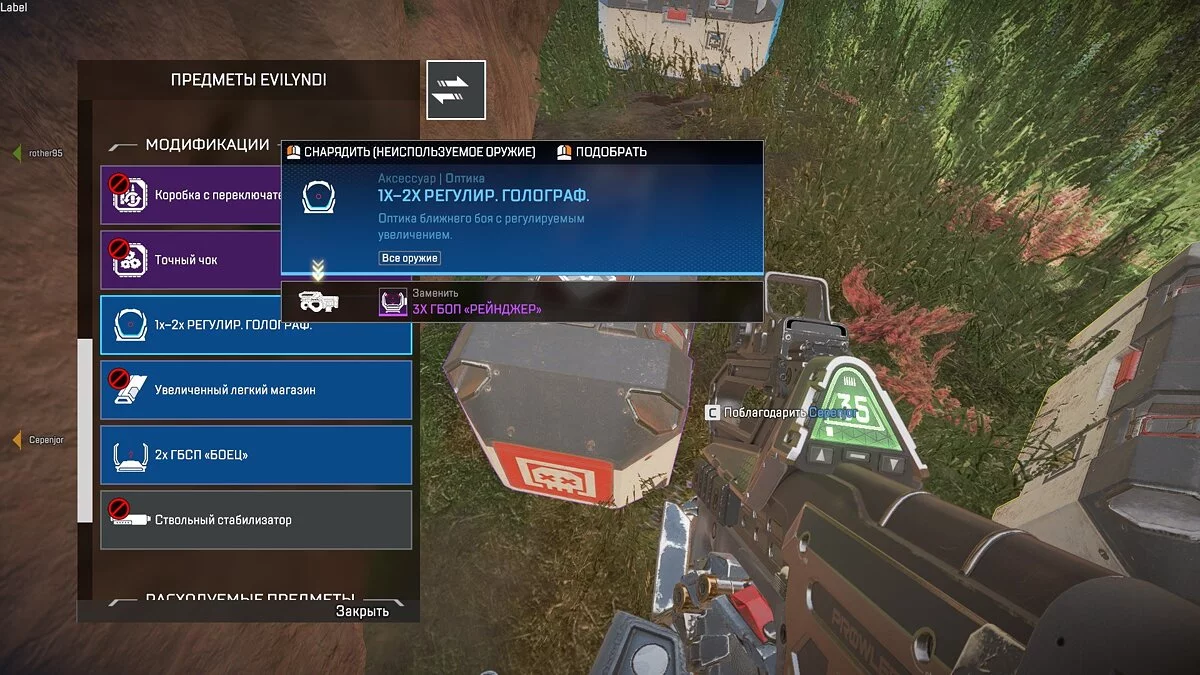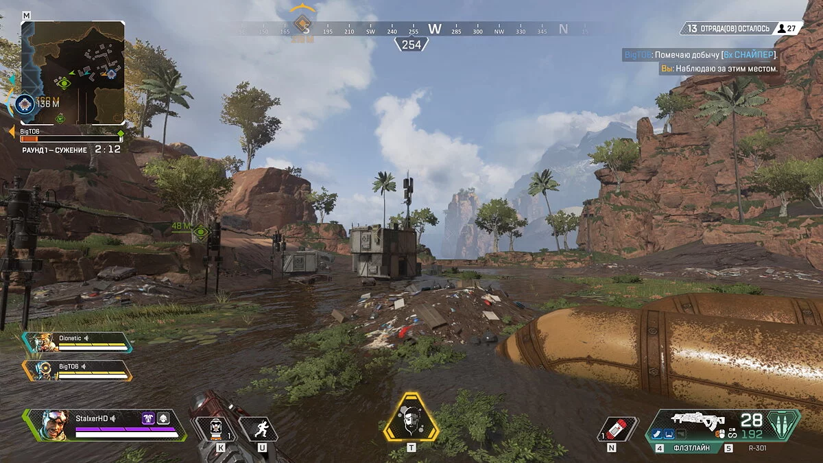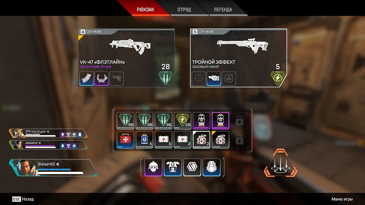 Более того, есть конкретная выкладка — дробовик «Миротворец», снайперка «Тройной эффект», винтовки «Флэтлайн» и «Хемлок», пистолет «Ведомый». Если дела совсем плохи — карабин R-301 с легкими патронами, но он практически бесполезен на дальней дистанции и автоматический дробовик EVA-8. Всё, про остальные 30 пушек можно забыть.
