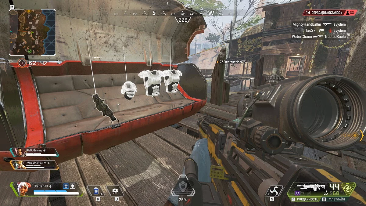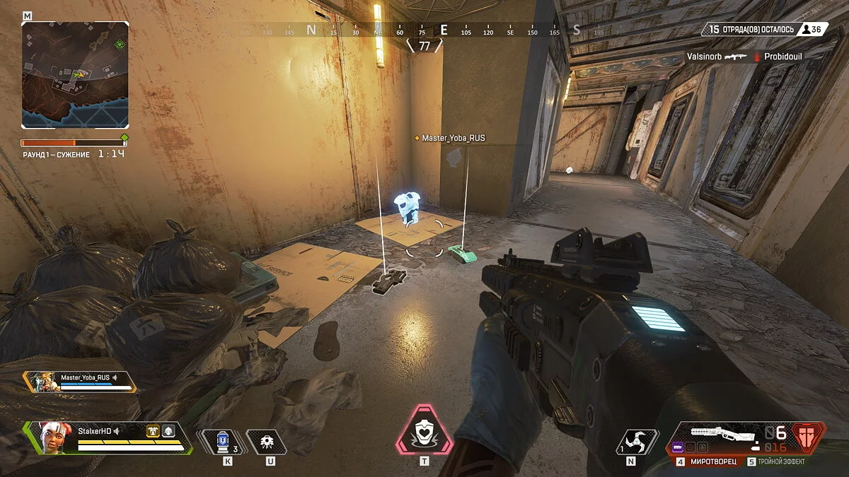 Патфайндер — один из наиболее бездарных персонажей Apex: его крюк активен на очень скромной дистанции и герой свалится с троса по любому поводу. Подцепить им врага не получилось за время игры ни разу (хотя декларируется), а умение «Тросомет» далеко не везде можно применить. Но главное — во время перестрелок ему нечего предложить команде.