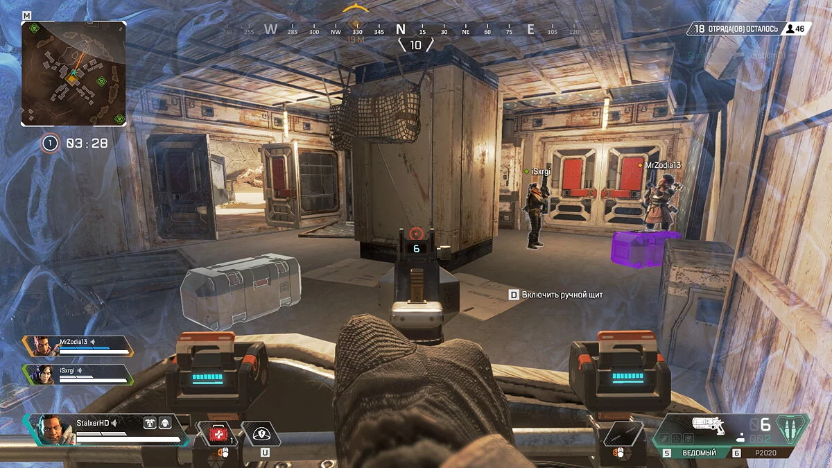 Интересная особенность щита в том, что к нему может прилипнуть лечащий дрон Лайфлайн. В этой комбинации вы можете двигаться гораздо дольше в коридоре вперед, поскольку дрон будет вас постоянно подлечивать. Либо вы можете просто переместить дрон в другое место.