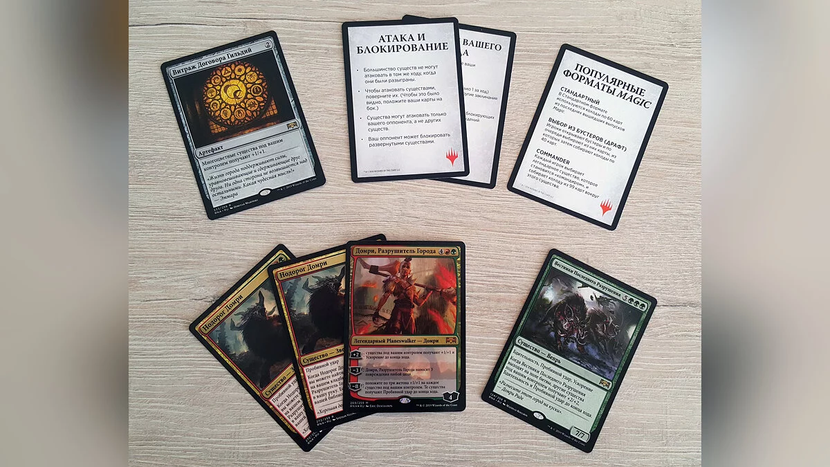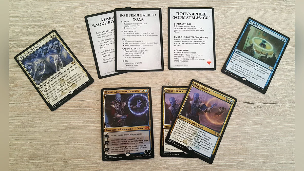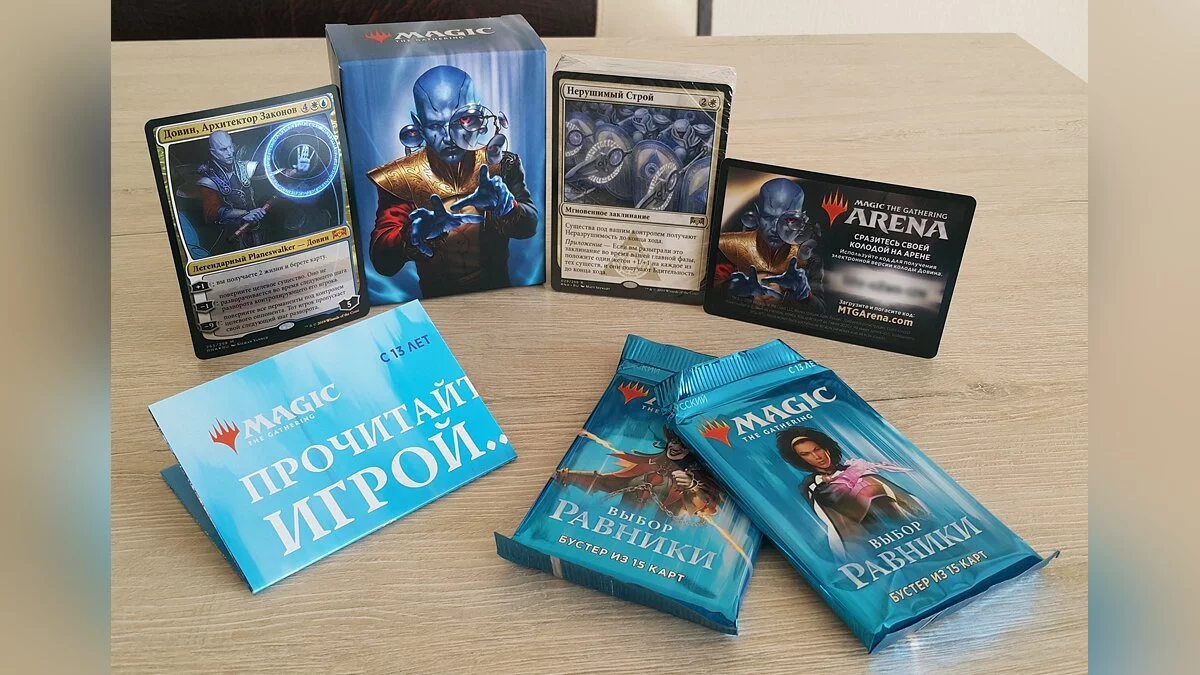К набору также прилагается два бустера по пятнадцать карт, а также код для активации колоды в цифровой версии игры. К слову, это эксклюзив: в MTG Arena нет другого способа получить карты Planeswalker-ов из набора. Еще в наборе есть обучающие материалы — брошюра с объяснением механик механик и карточки-памятки, которые пригодятся новичкам.