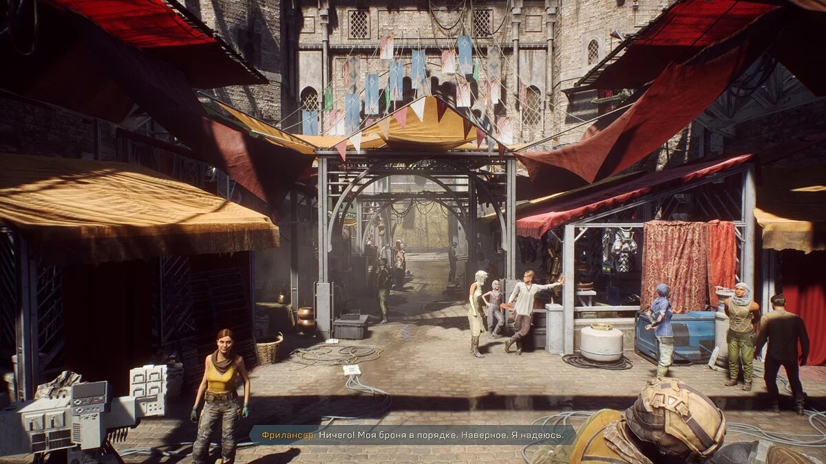Между заданиями игрок может погулять на своих двоих по форту Тарсис, который является «хабом» со всеми NPC. Со многими из них можно поговорить за жизнь, в то время как остальные просто имитируют бурную деятельность. Здесь же есть все магазины, а также мастерская, в которой можно настроить свой джавелин.