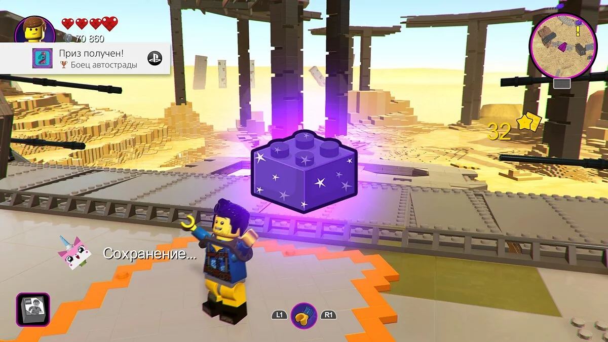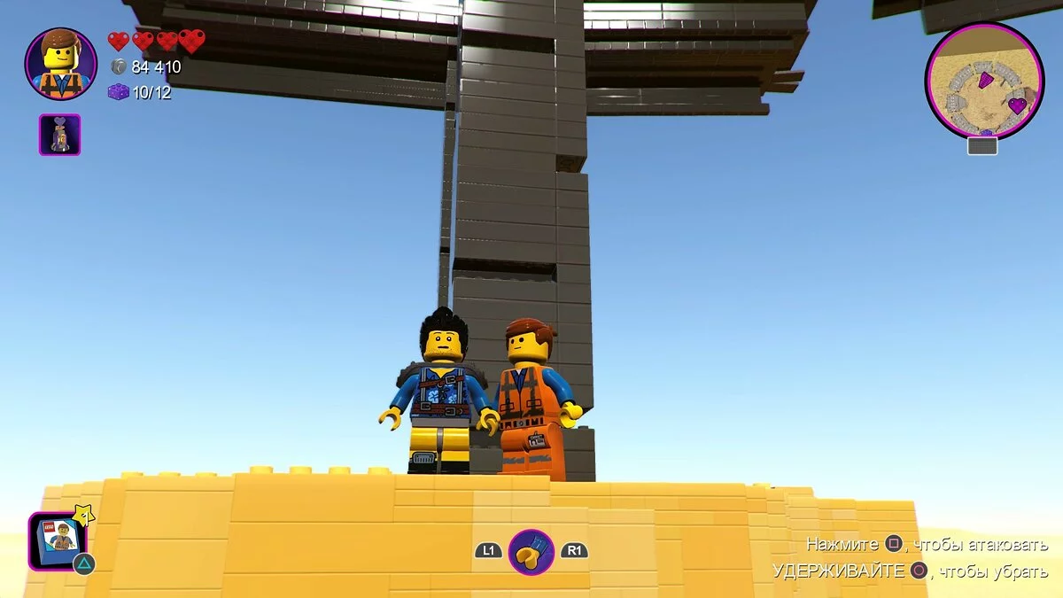 В игре также есть кооперативное прохождение на двух игроков (через разделенный экран), но мне так и не удалось опробовать этот режим. Наверняка, вдвоем с другом проходить The LEGO Movie 2 Videogame было бы гораздо веселее. Не забыли разработчики и про новичков, к которым я, как раз, отношусь. Есть обучение, позволяющее узнать, что где нажать, как построить объект и что для этого нужно. Проще говоря, игра не заставляет копаться в интернете в поиске какого-то гайда.