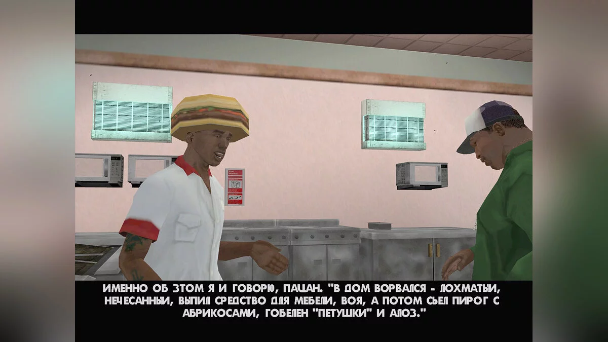 Перевод содержит также матерные выражения, а многие термины переводились без знания контекста. Например, Los Santos Inlet — «Бухта Лос-Сантоса» — здесь: «Отверстие Лос-Сантос».