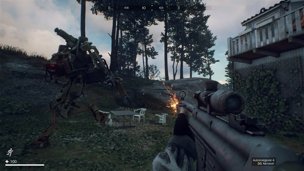 Например, газовый баллон пригодится против крупных роботов. Нужно лишь подобраться поближе, бросить его под ноги супостату, а затем взорвать. Конечно, можно просто расстрелять любого противника из ракетницы, но патронов для нее вечно не хватает. Это изюминка Generation Zero — приходится импровизировать на ходу.