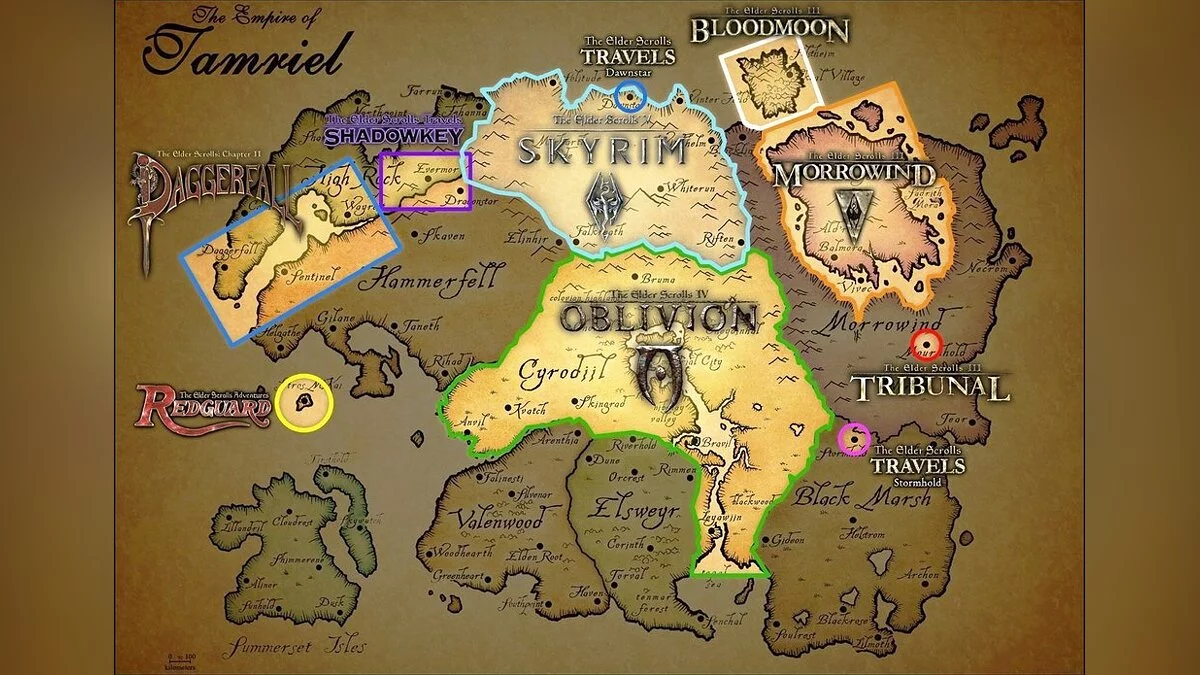 Просторы морровиндского острова Вварденфелл, увенчанного монструозным вулканом Красная Гора; леса и равнины имперского Сиродила с возвышающейся над ними Башней Белого Золота; долины и предгорья Скайрима с гигантской Глоткой Мира — это всё то, что присутствовало в последних трёх частях серии, всё то, что полностью открыто для исследования, наполнено городами, людьми, событиями, и так обожаемо фанатами.