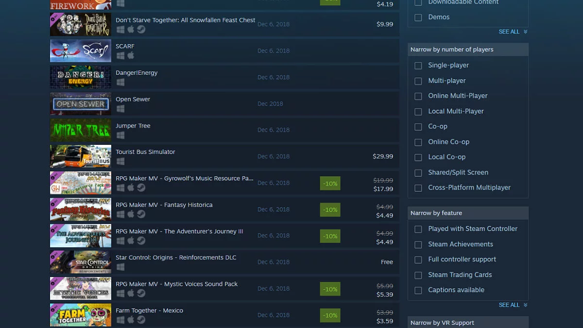 EGS на запуске представлял собой довольно жалкое зрелище, походя больше на бета-версию магазина. Сейчас интерфейс стал получше, но до сих пор нет ни тегов, ни даже категорий по жанрам, так что единственный способ найти интересующую игру — открыть главную страницу и остервенело мотать вниз до победного.