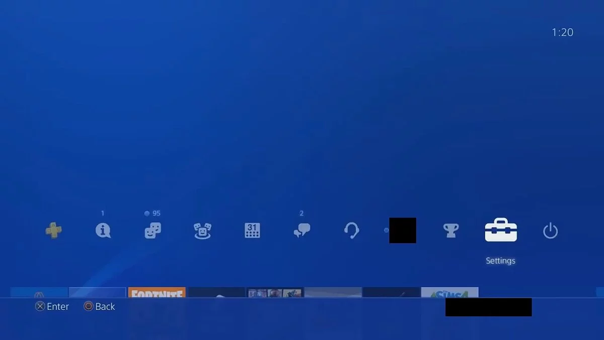 - Шаг 1: На своей PS4 перейдите в [Настройки];