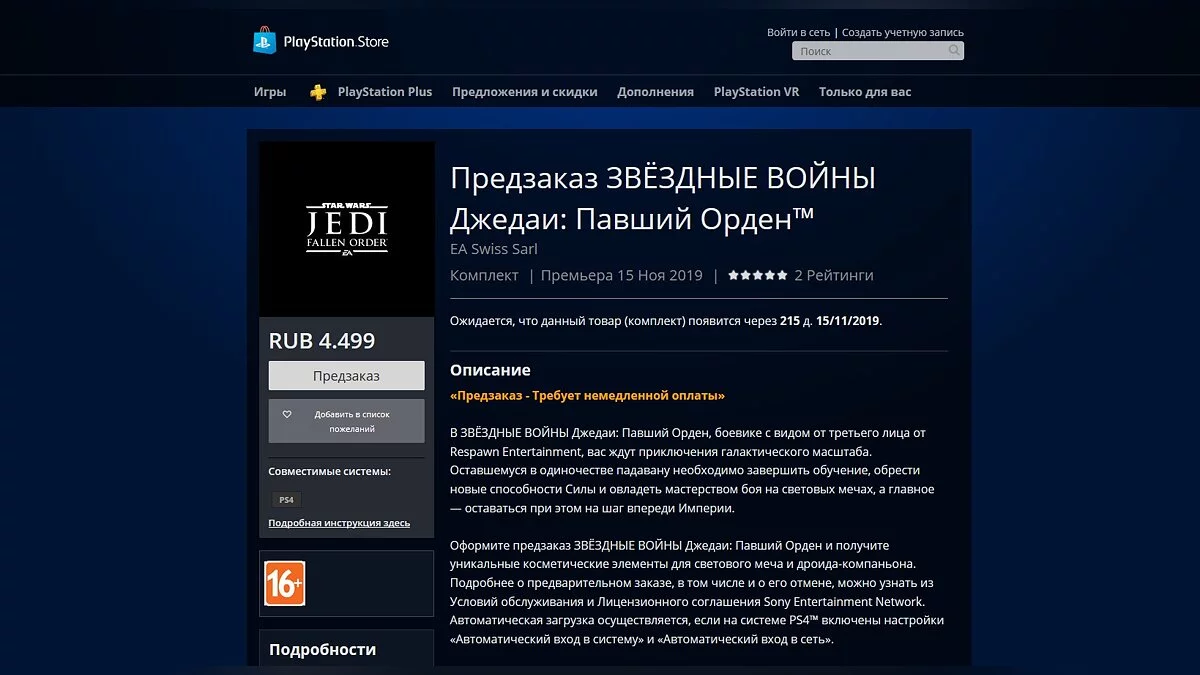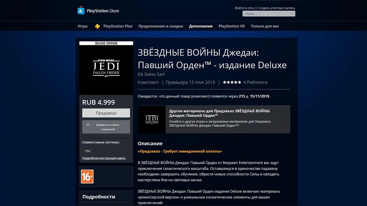 Стандартное издание для PS4 стоит 4499 рублей, издание Deluxe обойдётся в 4999.