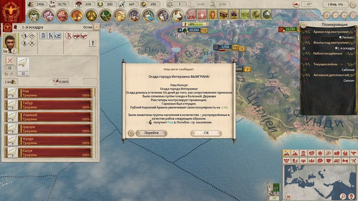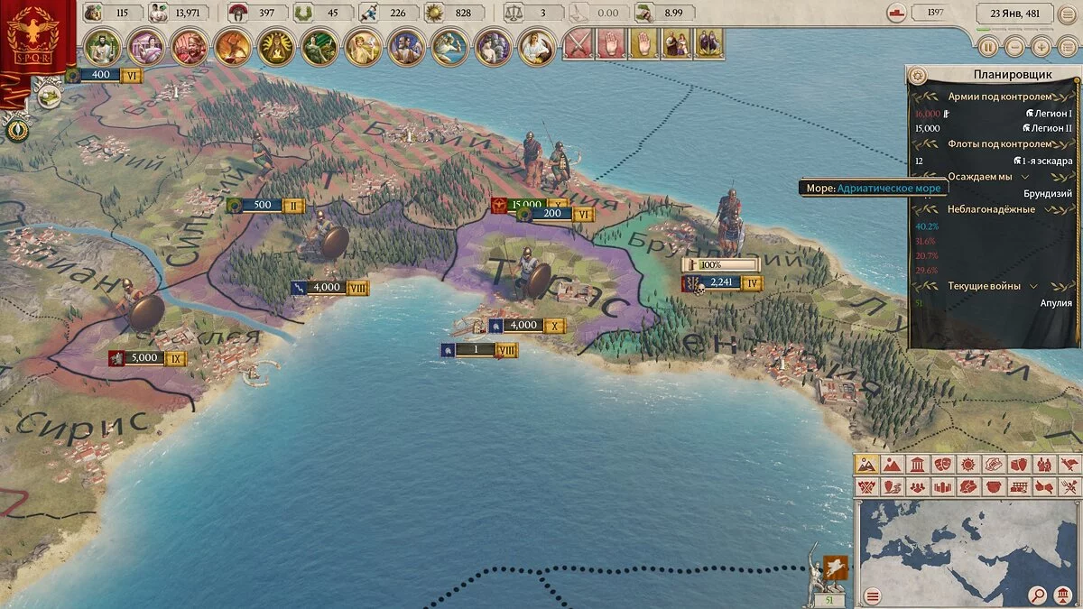 Взглянув на масштаб карты, становится ясно, что захватить этот огромный, просто колоссальный мир, целиком не получится. Поэтому игроку дают одну глобальную задачу. У Рима, например, освободить Италию от конкурентов, а позже — разрушить Карфаген.