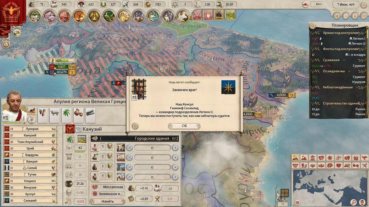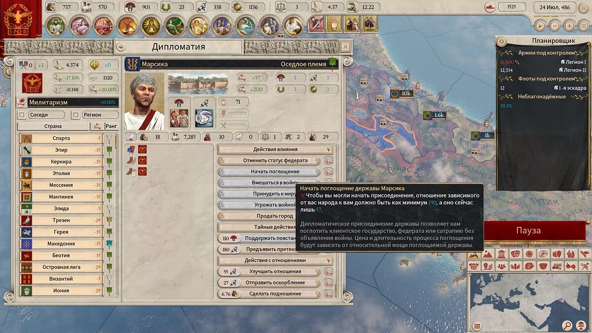 Вдобавок, все действия в игре рассчитываются исходя из дистанции до цели. Отправив посла или легион за тридевять земель, придется ожидать недели или даже месяцы, пока они достигнут места назначения. И вам еще повезет, если они не опоздают!