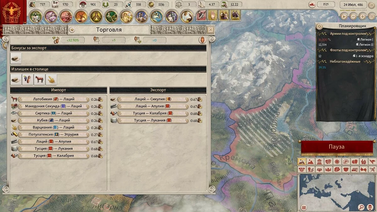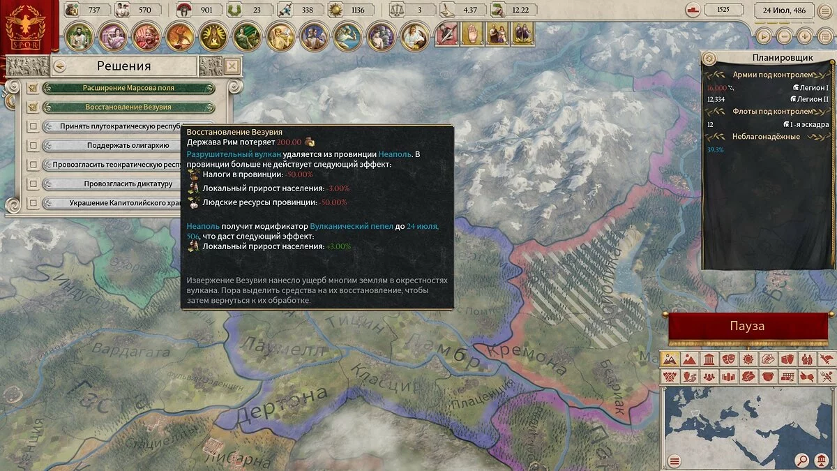 Чтобы получать информацию о состоянии государства разработчики предлагают множество карт-слоев (политическую, торговли, культуры и так далее), а также макропланировщик (с его помощью легко и быстро отдать приказ на строительство, набор войск или обращение в свою культуру/религию). Но когда число регионов превышает 300, этого также начинает не хватать и возникает вопрос — а зачем оно все нужно?