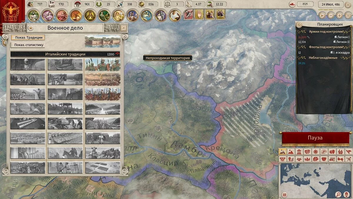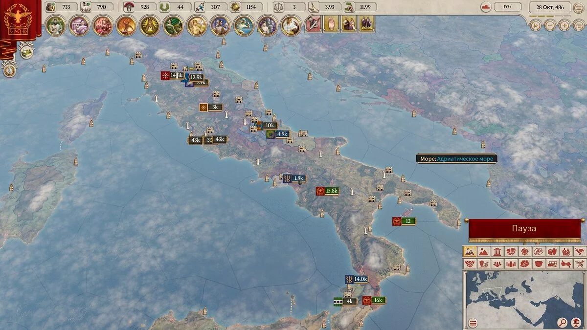 Но, если вы ожидали от Imperator: Rome повторения серии Total War, только в новой оболочке, то можете закрывать обзор — вам игра точно не понравится. Даже по ее весу (около 1,5 гигабайт) можно понять, что это классическая глобальная стратегия от Paradox.