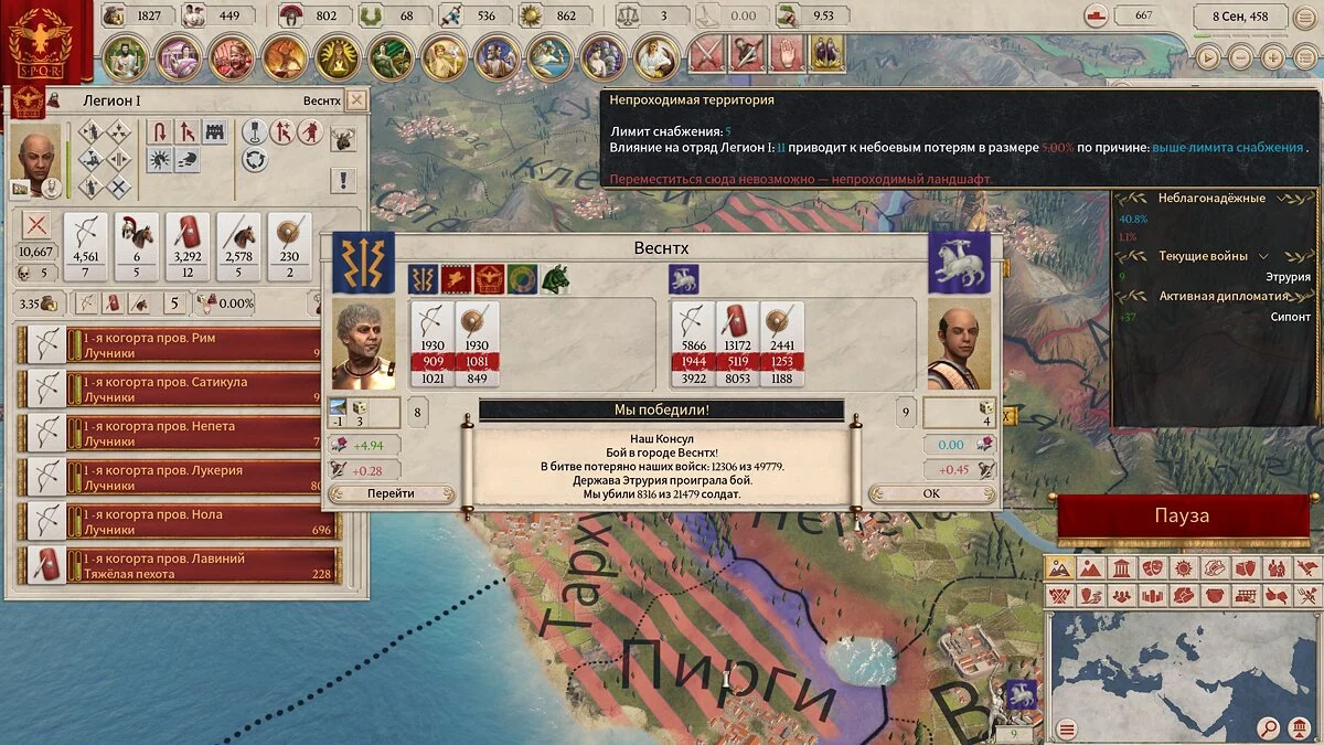 В отличие от Rome: Total War или Rome 2, детище Paradox не требует участвовать в бесконечных сражениях на случайно генерирующихся картах, напрягать мозг с балансом армии, расстановкой юнитов и отдачей им приказов. Здесь этого контента нет вообще.