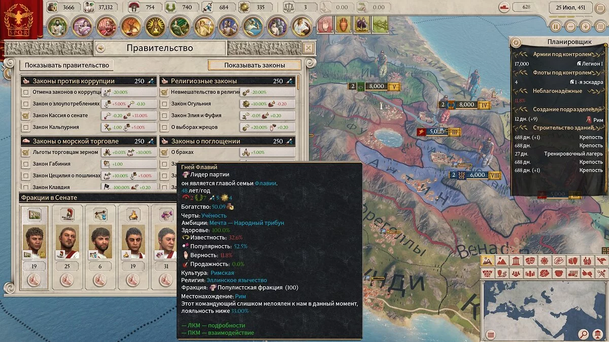 В отличие от большинства варгеймов, концентрировавшихся на юнитах и осадах, Imperator: Rome предлагает одновременно держать в голове множество параметров.