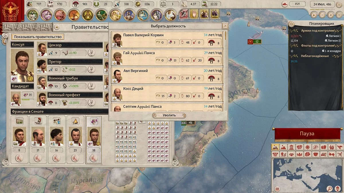 Правительство — один из важнейших компонентов геймплея, который определяет, как будет работать ваше государство. Видимо поэтому назначить сюда можно только профессионала из отрасли и выбор, как правило, велик: