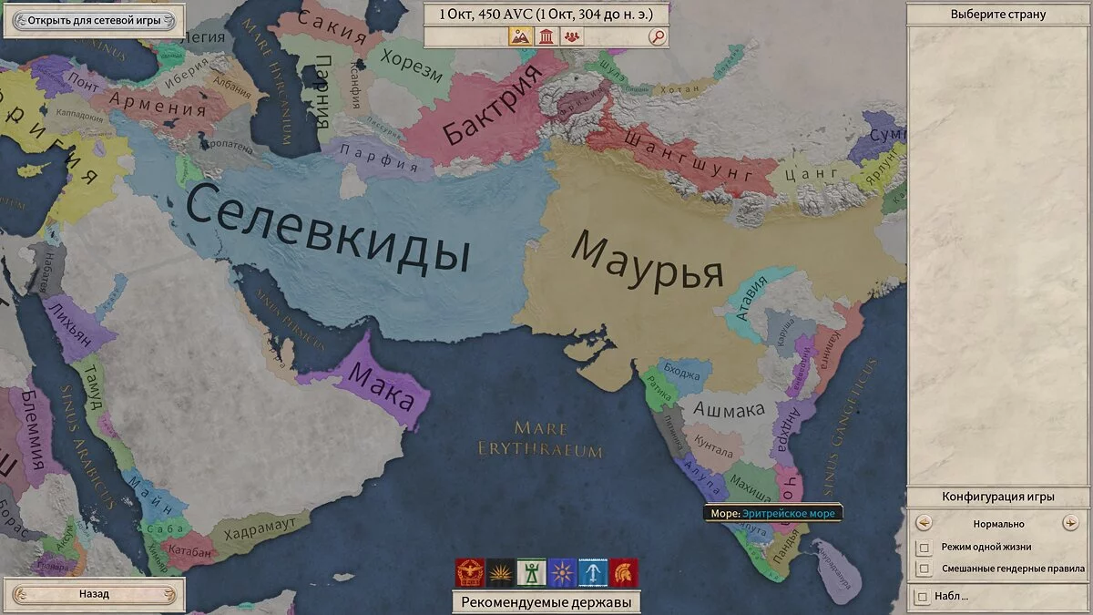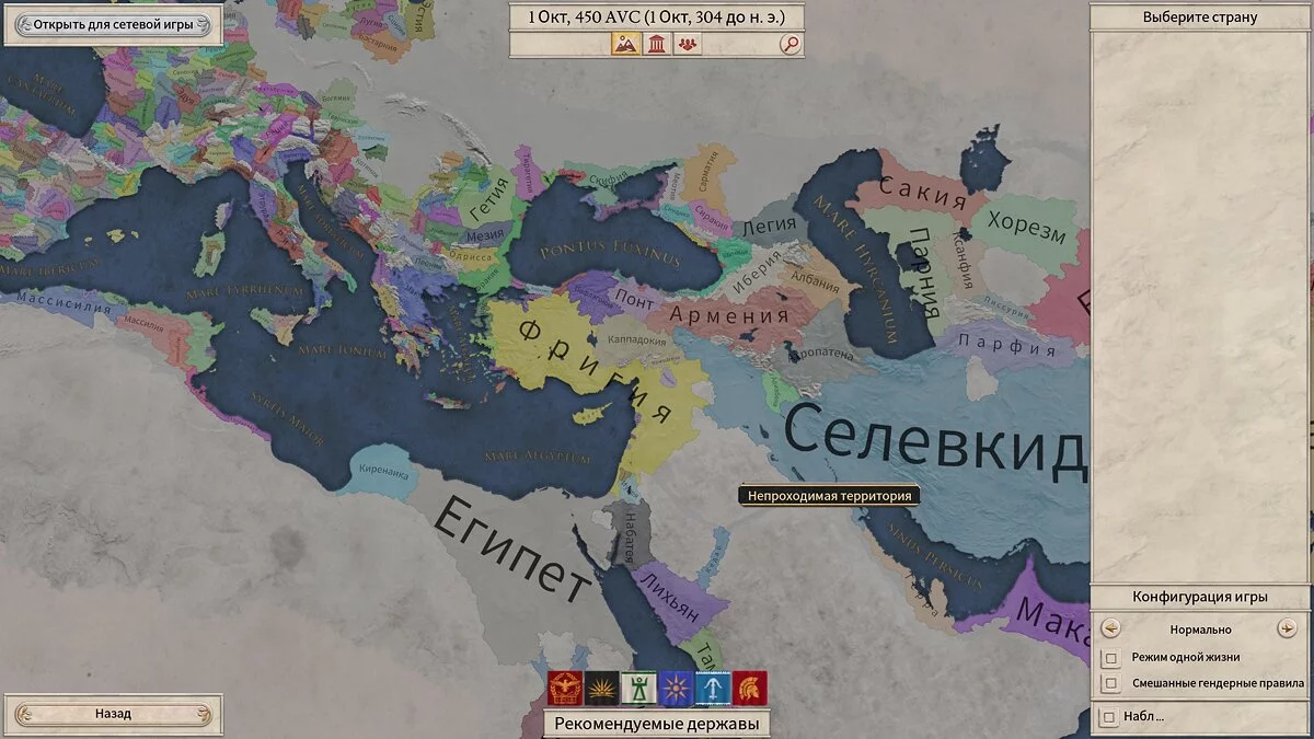 Игровой мир Imperator: Rome очень и очень большой, причем разработчики сделали его с сохранением пропорций. Например, территория современной Турции по площади в три раза больше Италии, а государства Азии — настоящие гиганты: