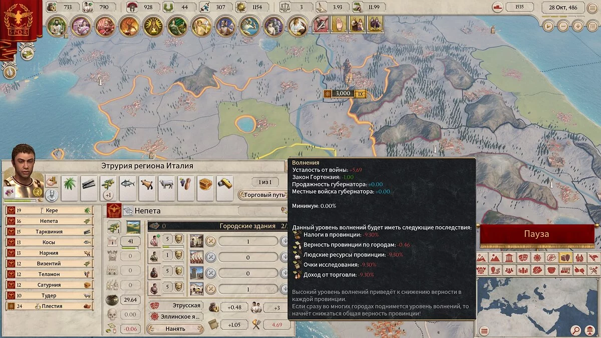 К числу основных проблем Imperator: Rome мы относим количество провинций и регионов, которые присутствуют на карте. Их невероятно много. Каждая имеет свою ситуацию в экономике, культуру, религию и добываемые ресурсы. Когда у вас 40 или даже 90 регионов под контролем, не составит труда настроить их и наладить взаимодействие.