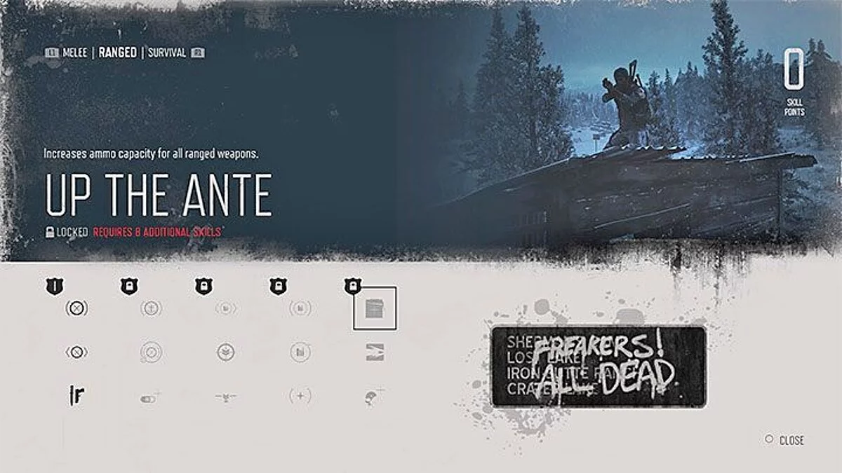 Отдельным вопросом является максимальное количество боеприпасов, которые вы можете нести. Чтобы носить больше патронов, вам нужно разблокировать еще одну способность — «По полной» (Up Ante). Это способность пятого уровня в категории «Стрельба». Разблокировка этого навыка позволит носить больше боеприпасов и реже возвращаться в лагерь для пополнения запасов.