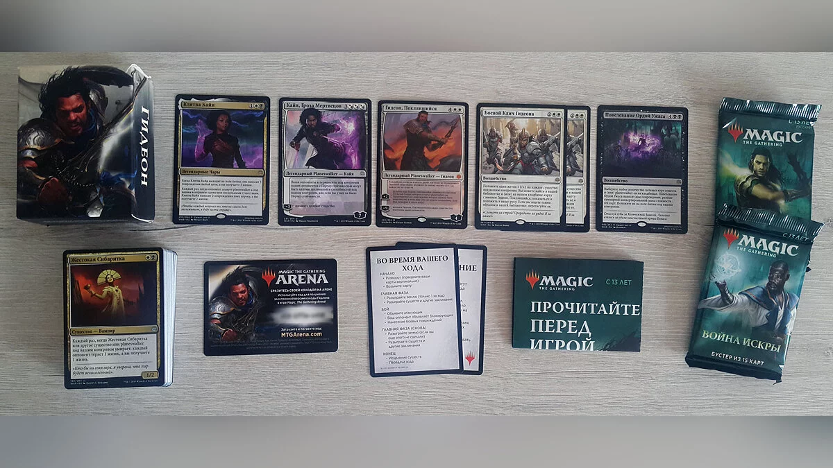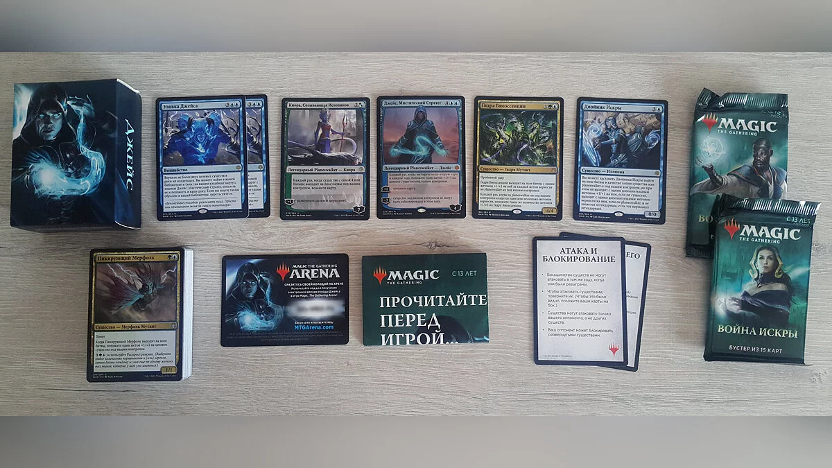 Каждый из них включает в себя полностью готовую к игре колоду из 60 карт. Она включает в себя карты разной редкости и в целом пригодна для похода на турнир в ближайший клуб по MTG, но у нее есть большой потенциал для улучшения. Как раз поэтому в каждом наборе есть два бустера, по 15 случайных карт в каждом. Также в коробке есть краткое руководство и полезные карточки-памятки.