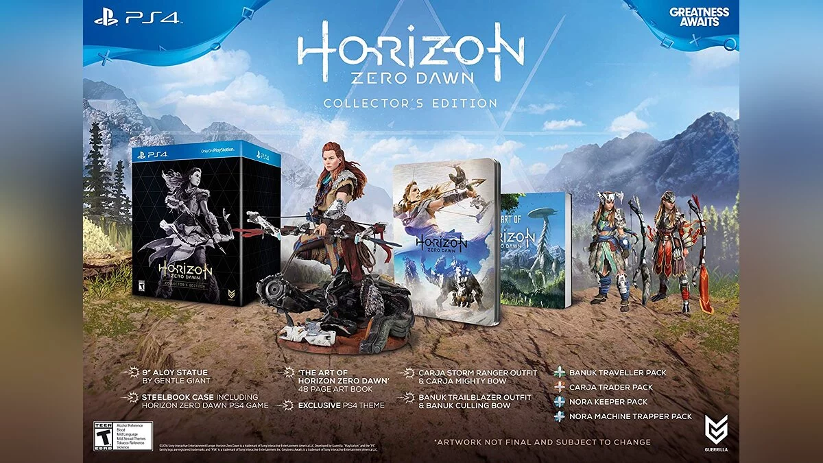 В издание входит фигурка Элой, артбук, внутриигровые костюмы, тема для PlayStation 4 и сама игра.
